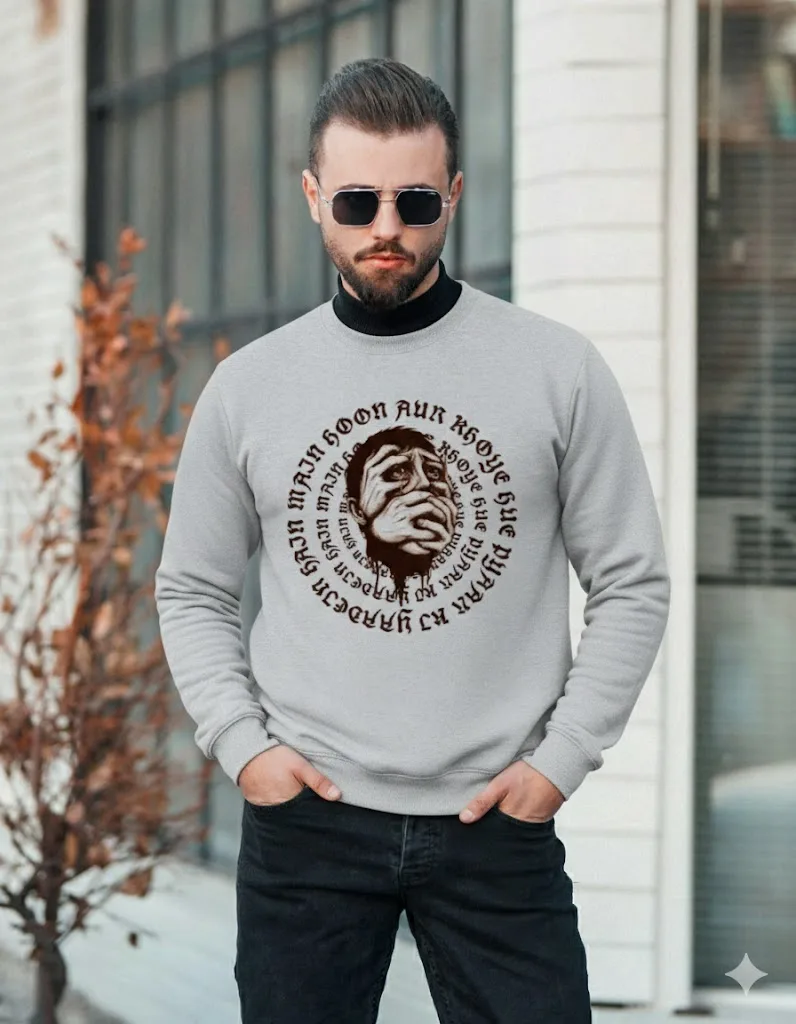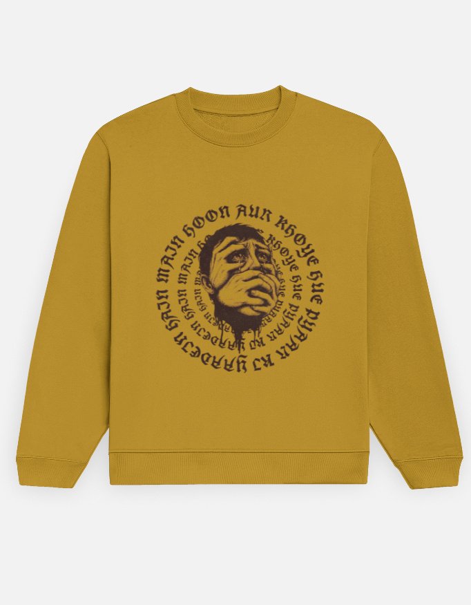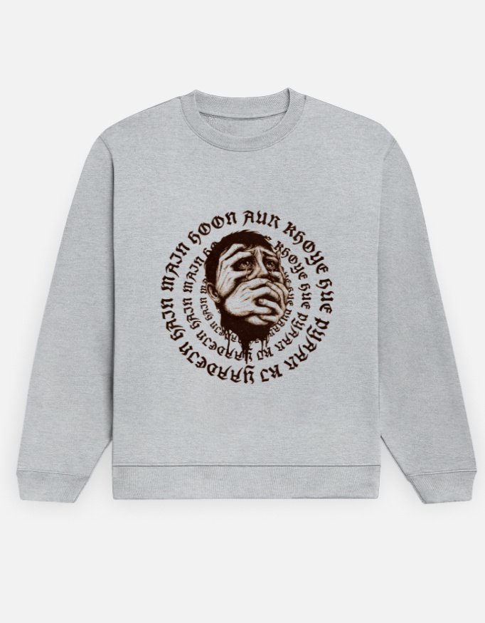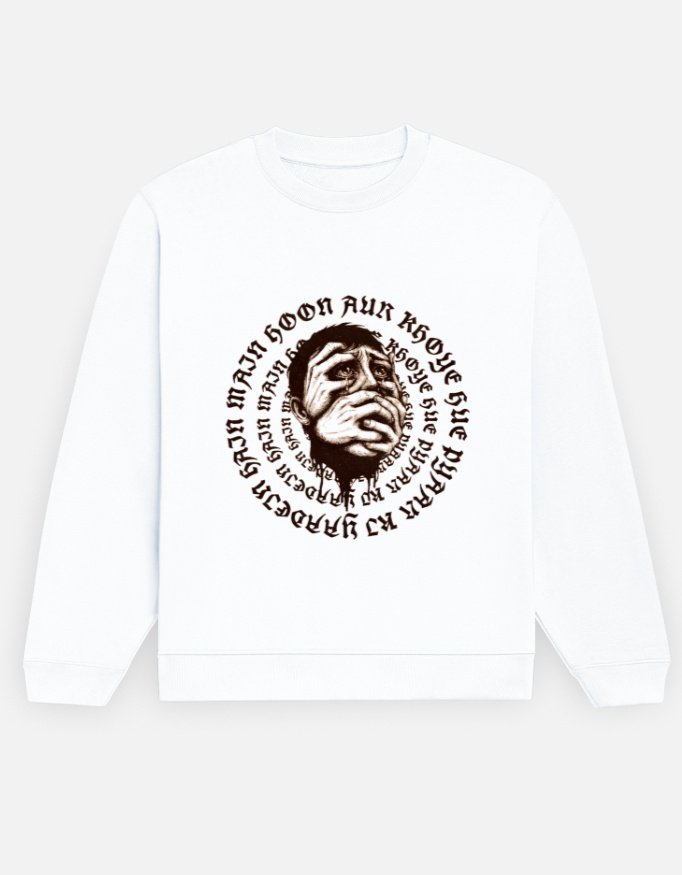 Grief is a circular staircase. This Barnini tee visually echoes the raw illustration of “Main hoon aur khoye hue pyaar ki yaadein hain,” circling back to where it all started. Featuring the emotion of lost love, it accentuates the ache of holding in too much and being breathless.