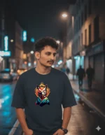 This tee adds an electric touch to the enigma of the Japanese fox spirit. The kitsune mask is at the centre of the design, crafted with the vibrancy of fiery orange, deep red and contrasting white. The glow of the red eyes that evoke power, hint at the strength of solitary strength. Let this wearable piece of art tell the story of your competence.